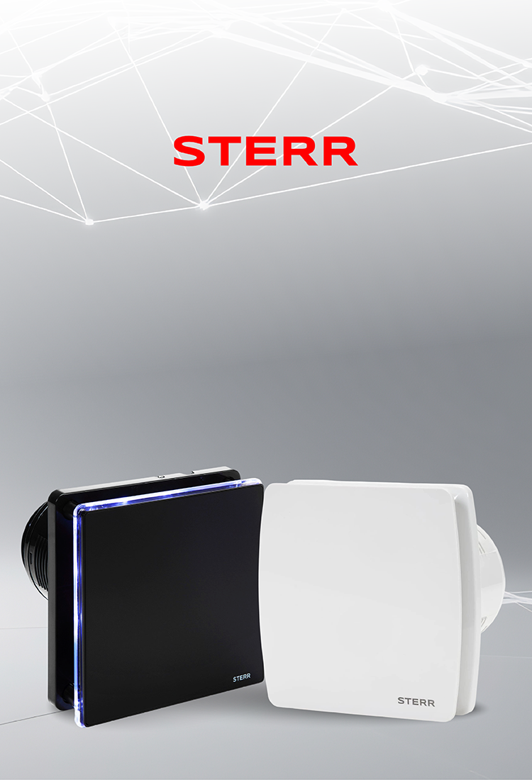 STERR BFS125LH-B - 125 mm Koupelnový Ventilátor, LED + s snímačem vlhkosti, 160 m³/h, Černá