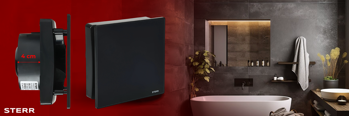 STERR BFS125H-MB - 125 mm Koupelnový Ventilátor, s snímačem vlhkosti, 160 m³/h, Matná Černá