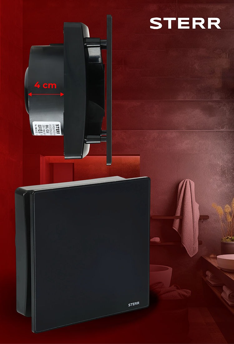 STERR BFS100T-MB - 100 mm Koupelnový Ventilátor, Časovač, 90 m³/h, Matná Černá