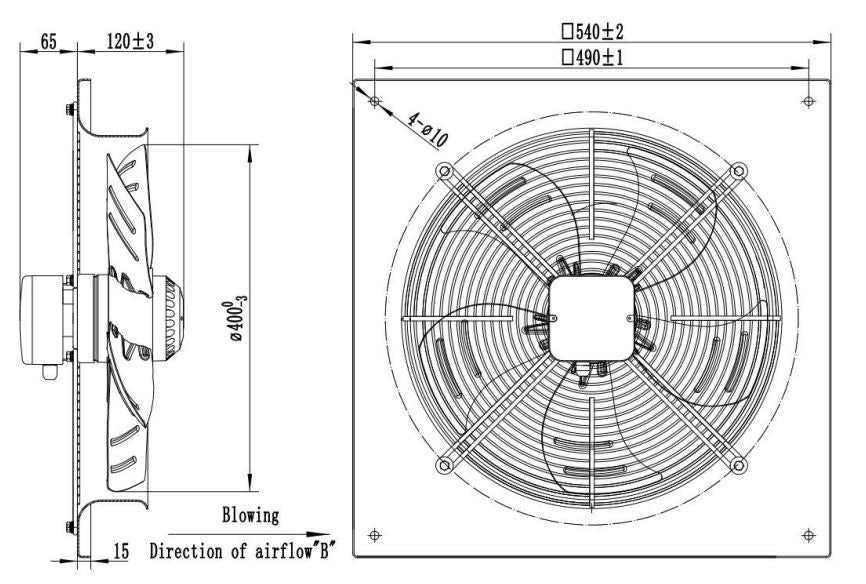 AXF400B – Axiální ventilátor pro komerční prostory, dílny a kuchyně.