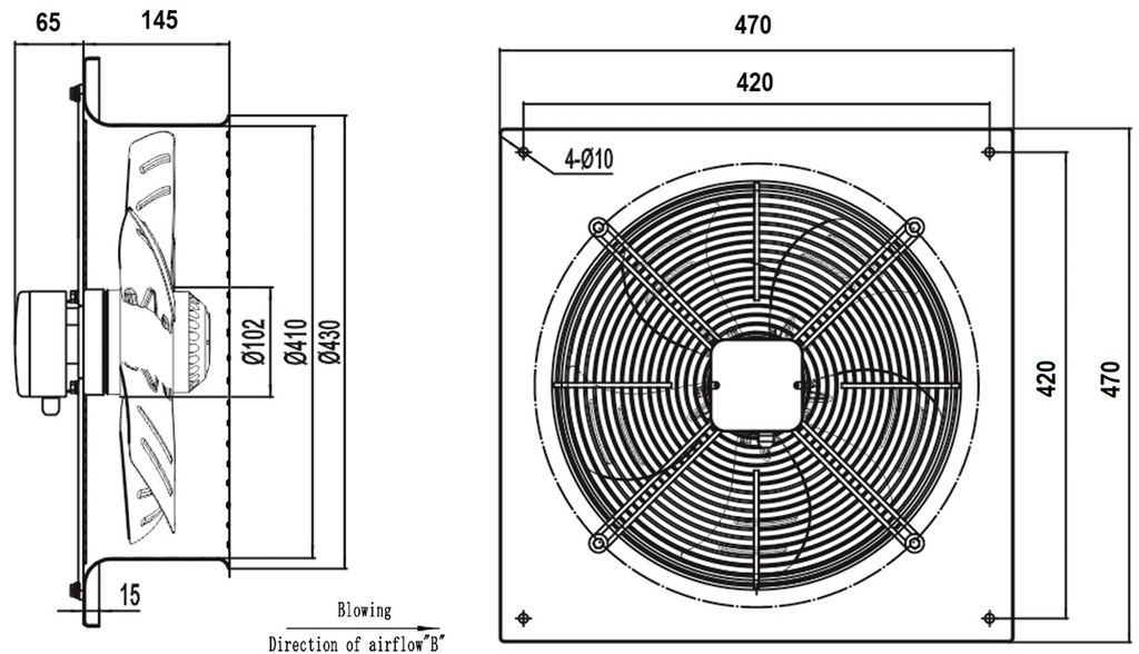 AXF400BG – Axiální ventilátor pro komerční prostory, dílny a kuchyně.