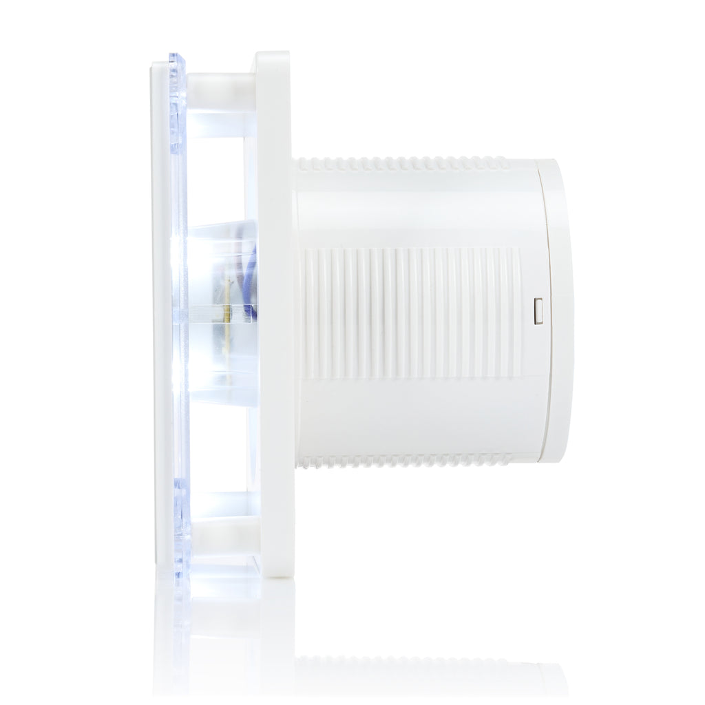 BFS100LH – Tichý koupelnový ventilátor s LED osvětlením a snímačem vlhkosti poskytující automatické řízení větrání s dekorativní atmosférou do koupelen a toalet.