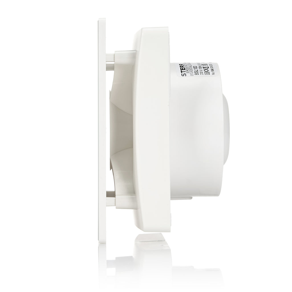 BSL100H – Kompaktní koupelnový ventilátor s krátkou přírubou 46 mm, ideální pro mělké dutiny ve zdi. Poskytuje spolehlivé větrání do koupelen a toalet.