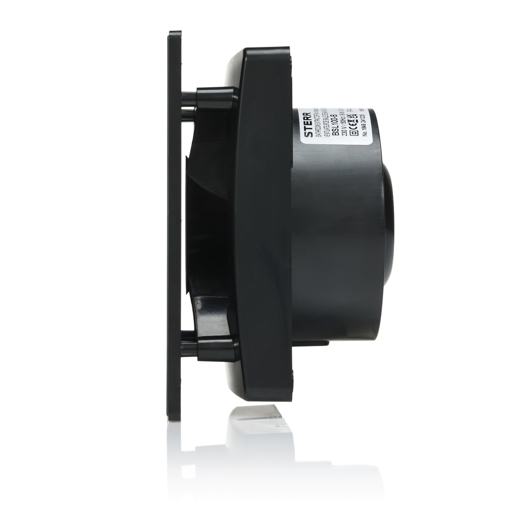 BSL100T-B – Kompaktní koupelnový ventilátor s krátkou přírubou 46 mm, ideální pro mělké dutiny ve zdi. Poskytuje spolehlivé větrání do koupelen a toalet.